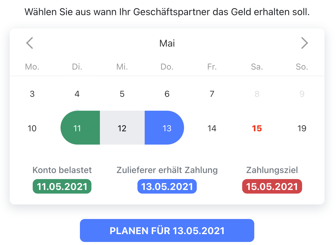 Sofort bezahlen oder gewünschtes Zahlungsdatum festlegen.