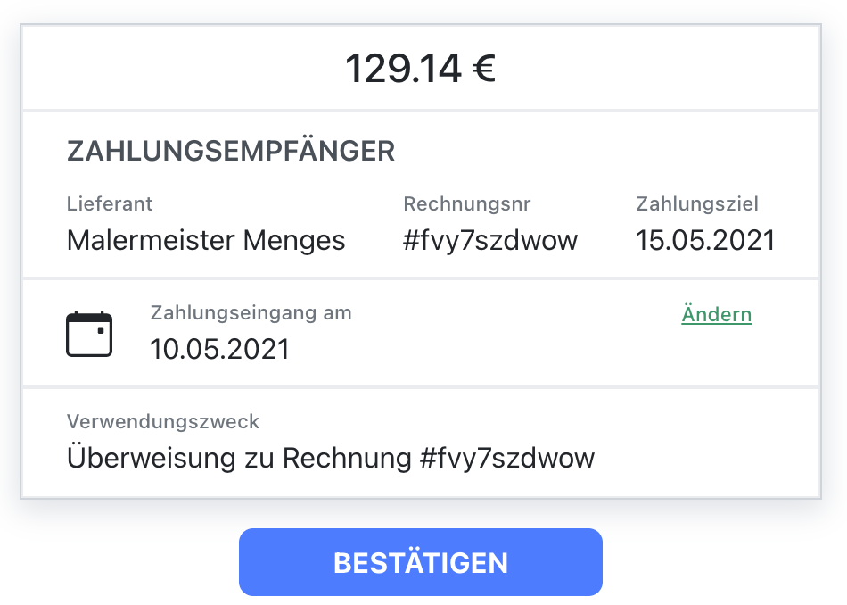 Rechnungsdetails wie Betrag, Empfänger und Kontonummer werden automatisch erkannt.